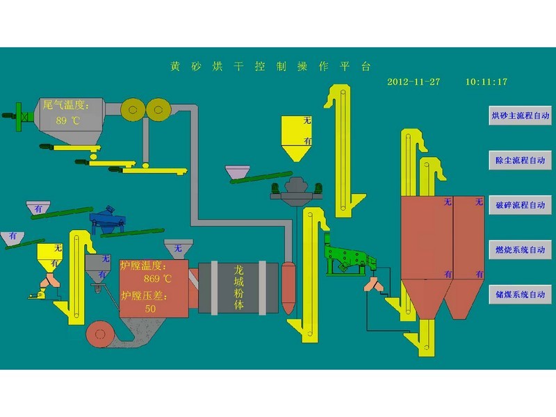 系統(tǒng)采用德國(guó)西門子PLC和研華工控機(jī)等國(guó)內(nèi)外尖端科技產(chǎn)品,工作現(xiàn)場(chǎng)的所有物料料位和所有物料開關(guān)閥門均采用現(xiàn)場(chǎng)實(shí)時(shí)動(dòng)作監(jiān)控,并在工控機(jī)人機(jī)操作界面上同步顯示,現(xiàn)場(chǎng)所有物料及機(jī)械運(yùn)動(dòng)均在人機(jī)操作界面上采用動(dòng)態(tài)顯示,畫面逼真,具有操作簡(jiǎn)單方便、運(yùn)行可靠、界面友好等特點(diǎn)。所有閥門的動(dòng)作和電機(jī)均采用程序保護(hù)。