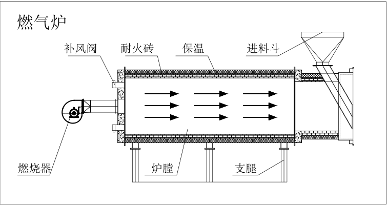 燃料通過燃燒器燃燒,產(chǎn)生高溫?zé)煔?,高溫?zé)煔馀c冷空氣充分熱交換,達(dá)到設(shè)定溫度后進(jìn)入烘干機(jī)內(nèi)部,當(dāng)熱風(fēng)溫度達(dá)到額定的上限溫度時,燃燒器會自動停止燃燒或轉(zhuǎn)為小火焰燃燒,當(dāng)熱風(fēng)溫度降低到額定的下限溫度時,燃燒器又會重新點燃運(yùn)行或轉(zhuǎn)為大火焰燃燒,升溫的速度可調(diào)進(jìn)風(fēng)閥來實現(xiàn)。