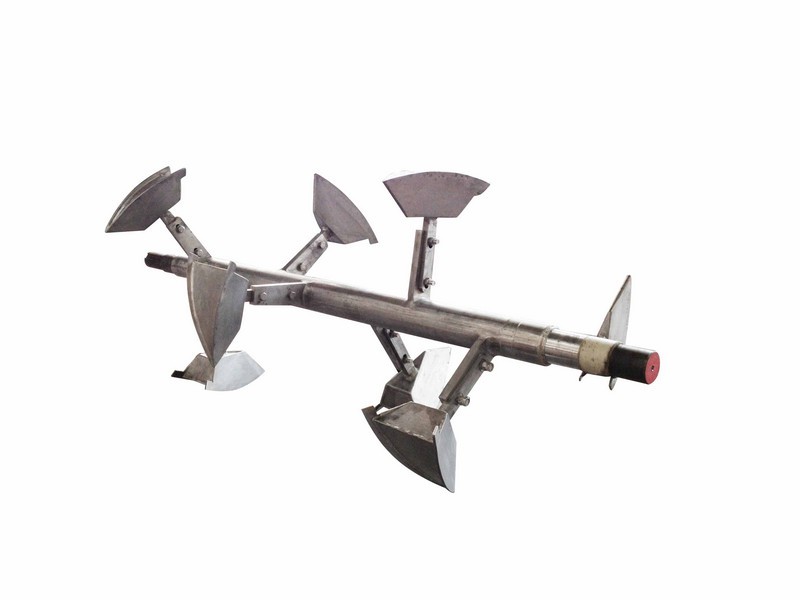 該混合機工作時,主軸以適當(dāng)?shù)霓D(zhuǎn)速帶動犁刀旋轉(zhuǎn),飛刀由電機直接驅(qū)動作高速運動。筒內(nèi)物料受犁刀作用而拋起,一部分沿筒壁作圓周運動,另一部分被拋向筒體中心或沿犁壁法線方向向筒體兩端飛散,進行浮游式擴散混合。物料流經(jīng)高速旋轉(zhuǎn)的飛刀時,被高速剪碎和強烈擴散,進行剪斷擴散混合。粉粒體在機內(nèi)的運動軌跡縱橫交錯,互相撞擊,產(chǎn)生洶涌的渦流,在極短的時間內(nèi)達到均勻的混合。